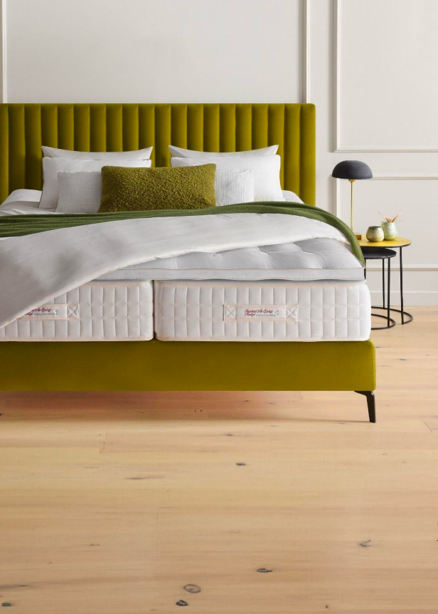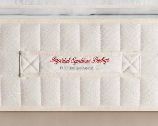 Die Matratze Impérial Symbiose Prestige ruht auf Talalay sowie auf einer grossen Menge reiner Schurwolle aus Frankreich auf der Winterseite und Baumwolle auf der Sommerseite, um einen unvergleichlich weichen Komfort zu bieten. Sie ist in drei Härtegraden erhältlich.